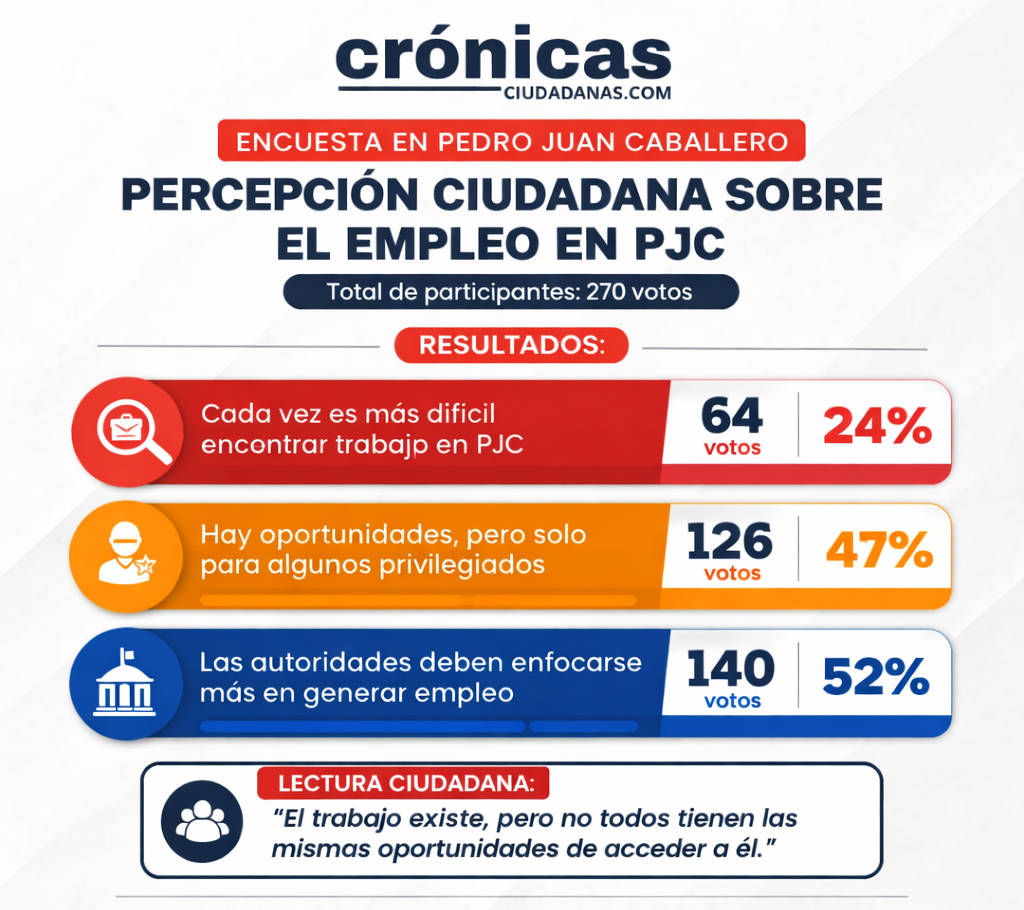 Encuesta realizada por nuestro medio expone una creciente preocupación ciudadana sobre la situación laboral en Pedro Juan Caballero, donde la percepción predominante no apunta únicamente a la falta de empleo, sino a la dificultad de acceder a oportunidades en condiciones equitativas.