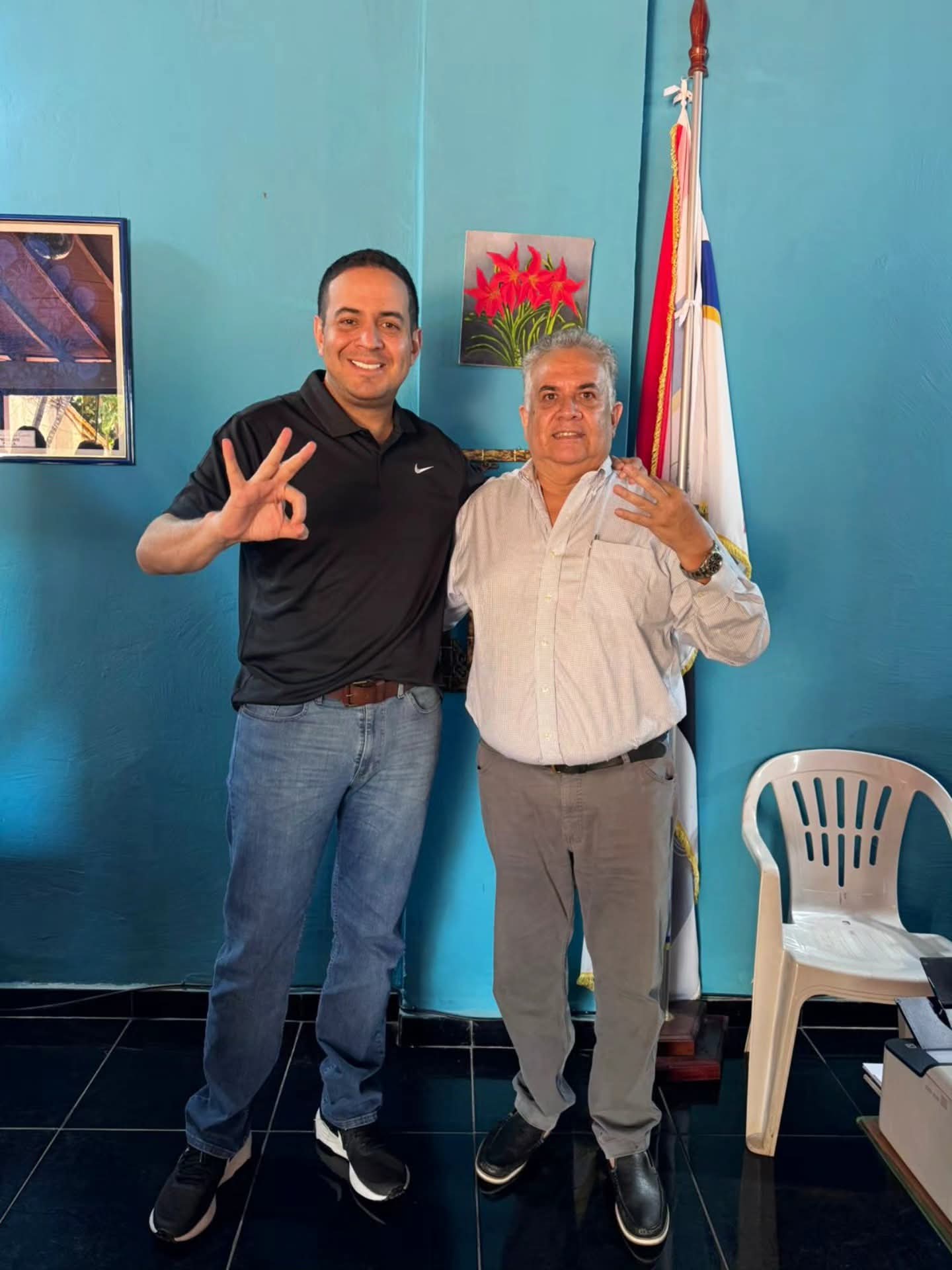 El Líder Nacional del Movimiento Nuevo Liberalismo, Ricardo Estigarribia, Gobernador de Central (izquierda) con el pre candidato a la Intendencia Municipal de Pedro Juan Caballero Arq. Arq. Miguel Rojas León (derecha).
